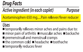 650 mg of acetaminophen per serving to support in the temporary reduction of overall body, joint, or muscle pain as well as fever.