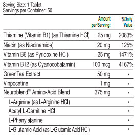 Una fórmula exclusiva que contiene vitaminas del complejo B, amino-ácidos, vinpocetina y acido glutámico. Disponible en blíster de 30 tabletas.
