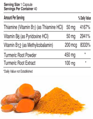 Neurobion® Curcumin capsules povide the important B vitamin complex, B1, B2 & B12 plus Curcumin extract and powder