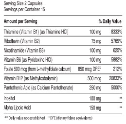 Suplemento formulado con ingredientes que apoyan tu dieta con las importantes vitaminas del grupo B, incluyendo Vitamina B12 como Metilcobalamina y Folato como Metilfolato. También con el importante Antioxidante Acido Alfa Lipoico que apoya al metabolismo en varios procesos. Disponible en 30 capsulas